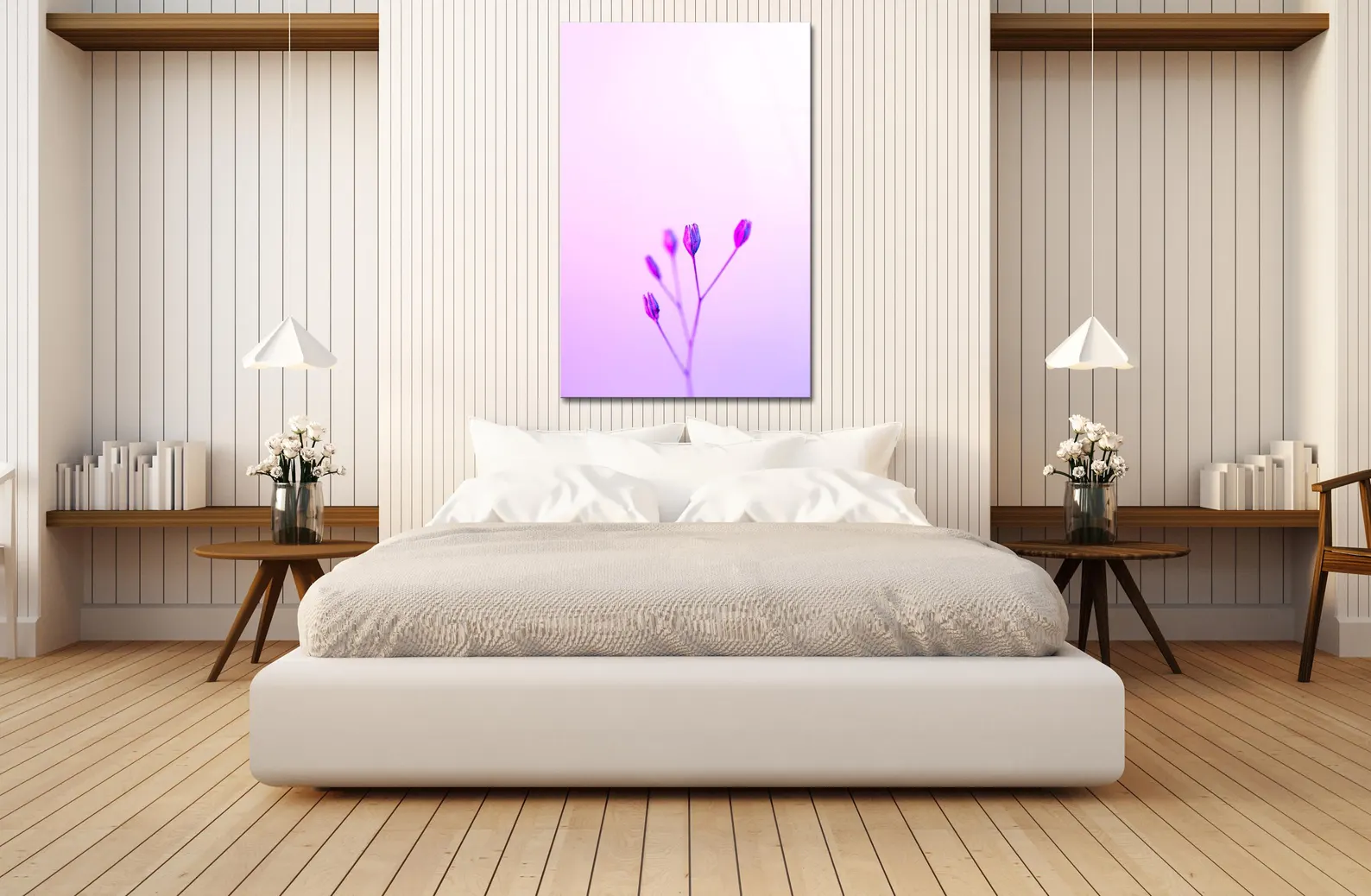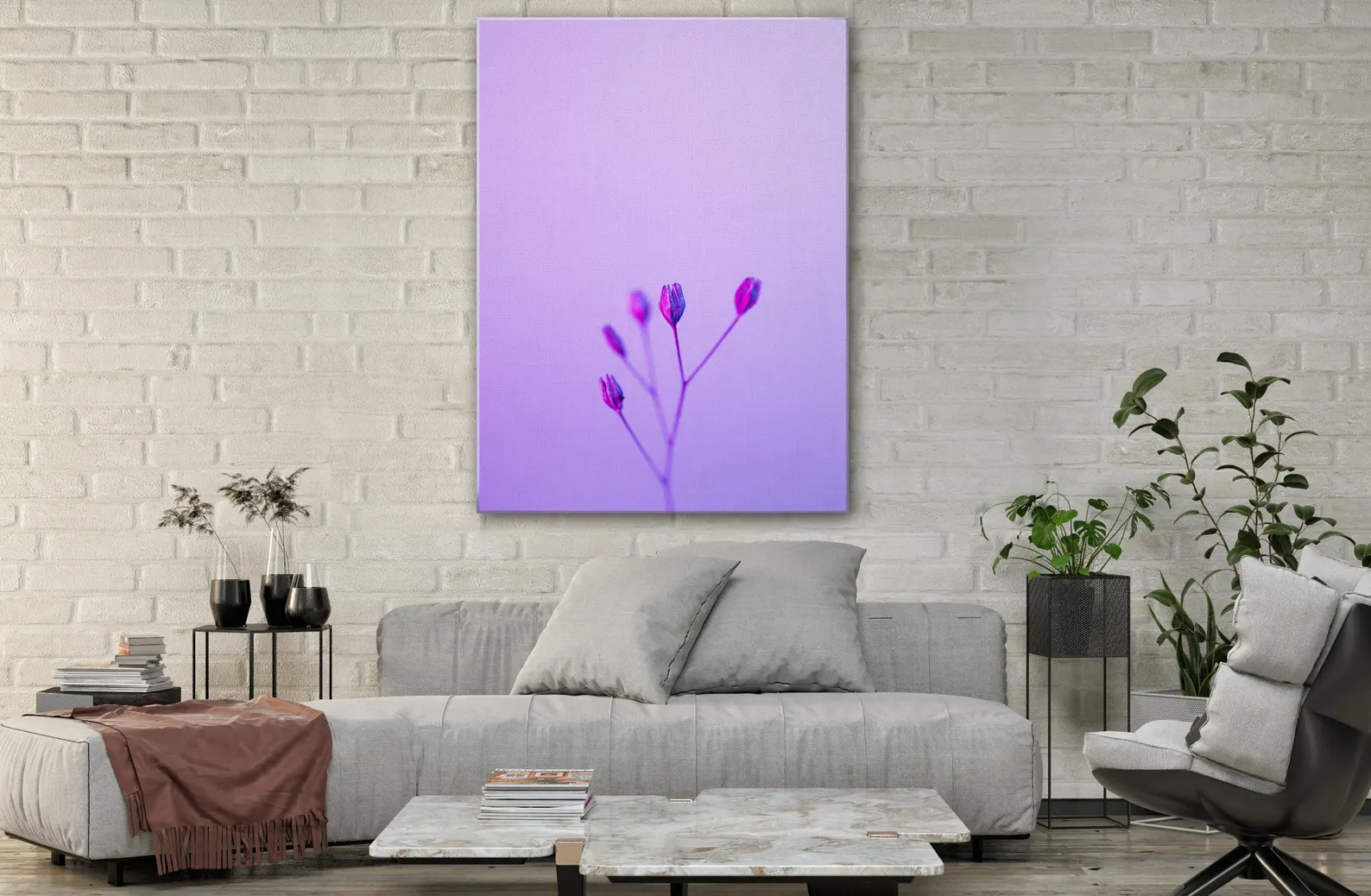 Cette œuvre au style botanique contemporain capture la beauté simple d’une tige unique et d’une fleur délicate, symbole de paix et de lumière.