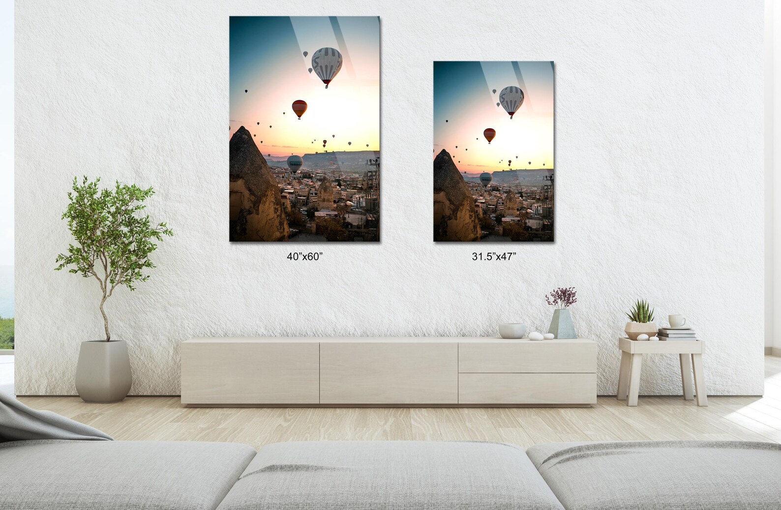 Laissez-vous emporter par la magie du lever du soleil en Cappadoce, capturée dans cette œuvre murale unique.